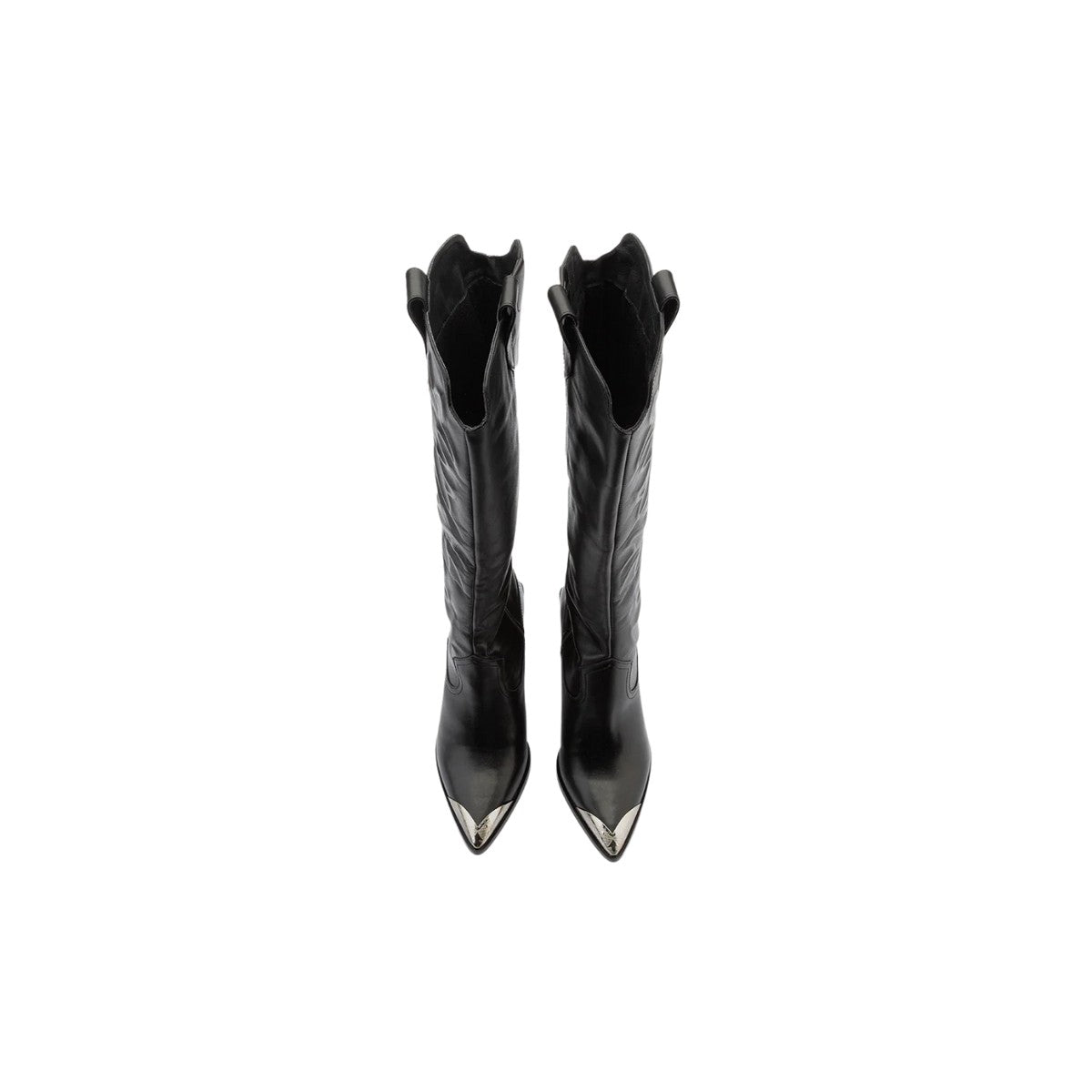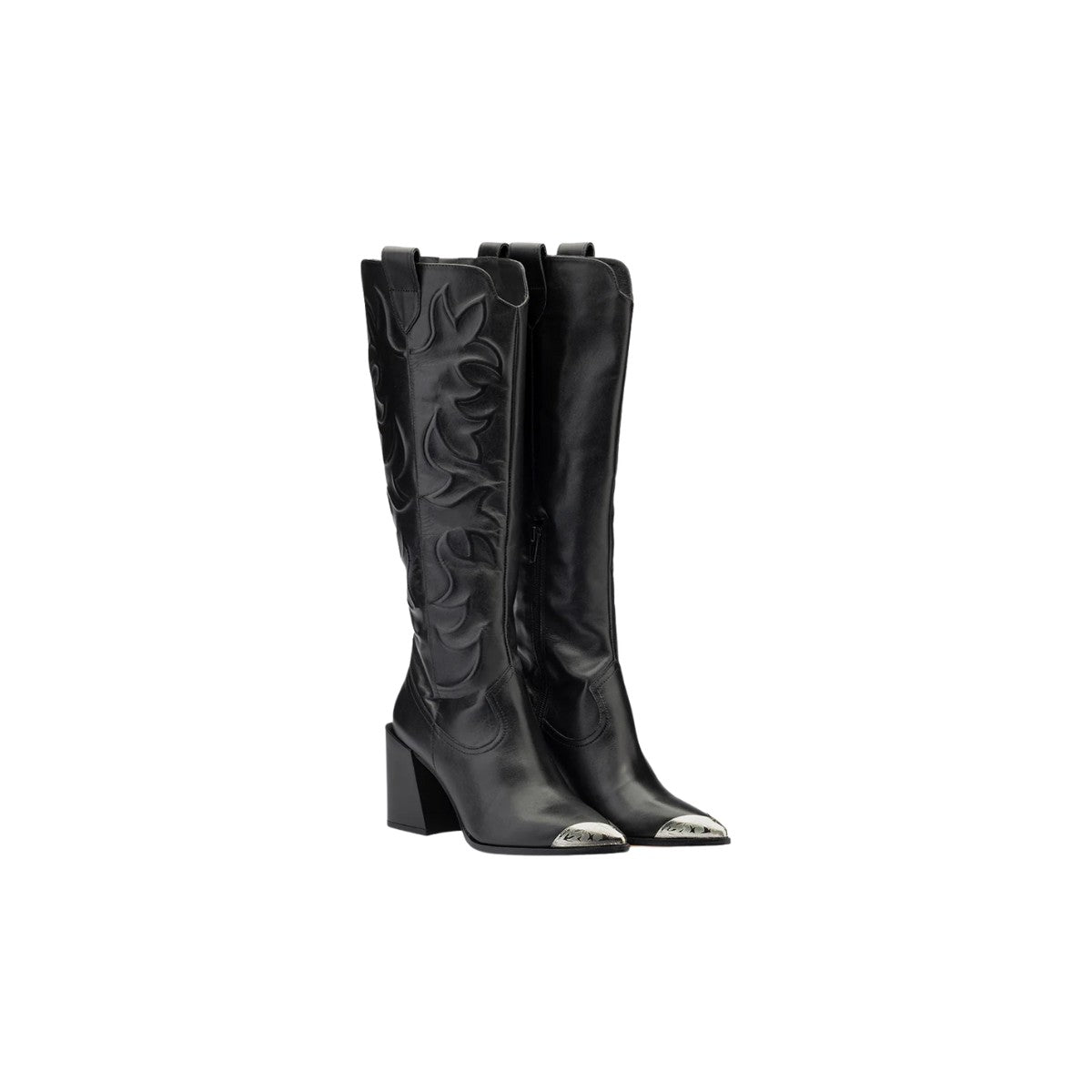 Botas altas vaqueras para dama elaboradas en piel con acabado suave en color negro que aportan un look elegante y atemporal. Su tacón de 8 cm estiliza la figura sin sacrificar comodidad, mientras que la plantilla de piel brinda mayor confort en cada paso. La suela de caucho con diseño antideslizante ofrece estabilidad y seguridad al caminar. Ideales para uso diario, oficina o eventos especiales, combinan estilo, durabilidad y funcionalidad en un solo diseño.