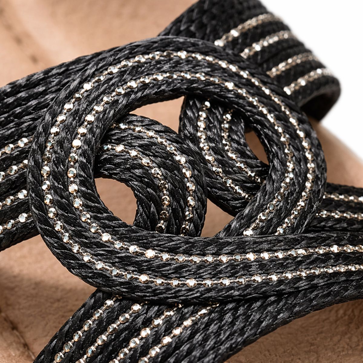 - Diseño trenzado con detalle central elegante y moderno.