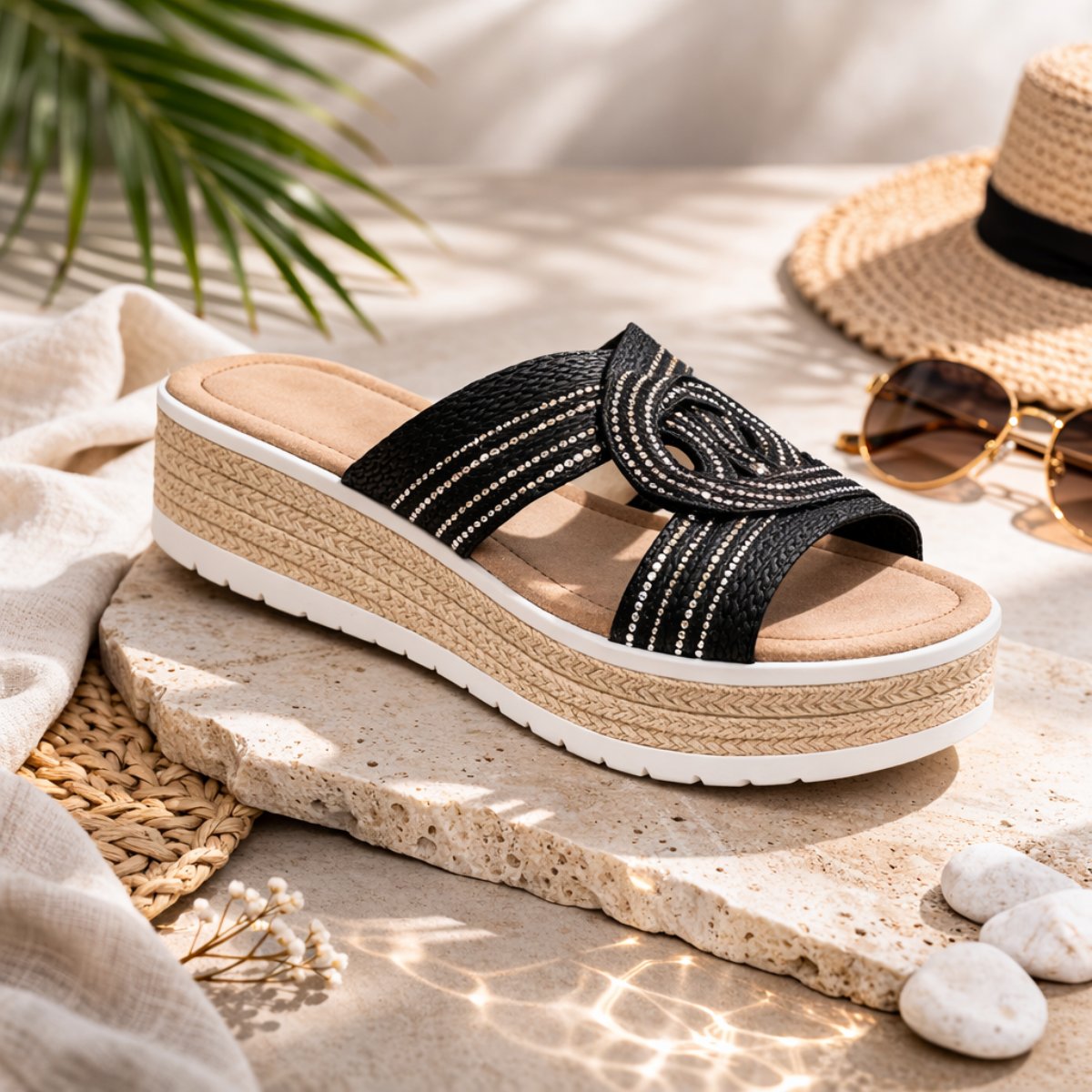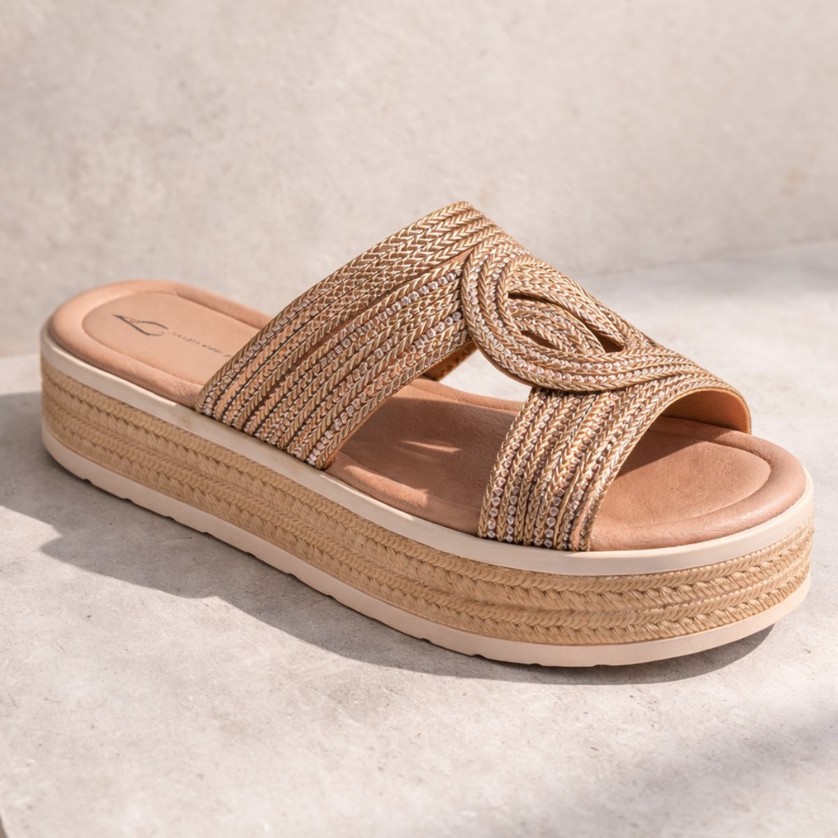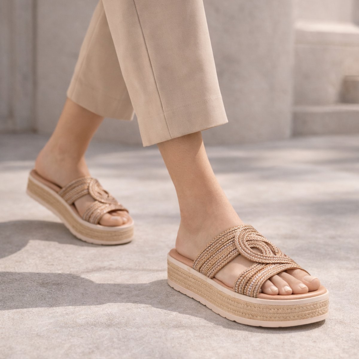- Plataforma tipo espadrille ligera y estable al caminar.