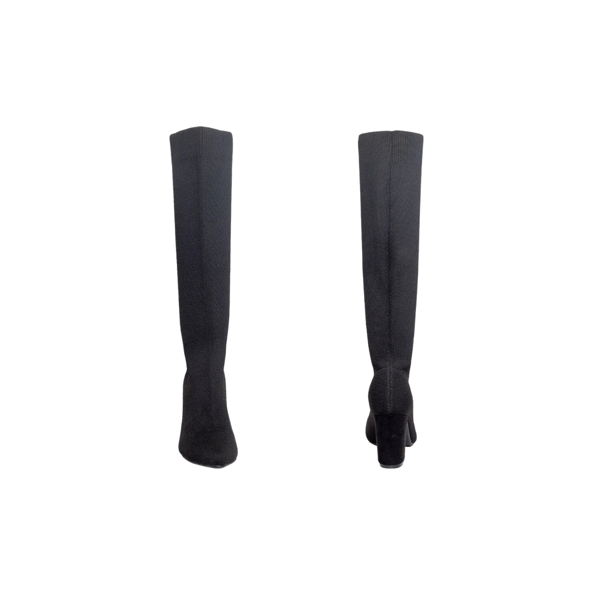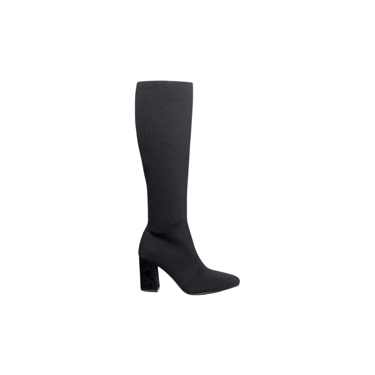 Bota de dama con tubo alto textil tipo stretch que se adapta cómodamente a la pierna y estiliza la silueta. Su diseño moderno es ideal para complementar outfits casuales o formales durante la temporada. El tacón tipo bloque de 8 cm brinda altura con estabilidad, permitiendo un uso cómodo por más tiempo. Perfectas para el día a día o para ocasiones especiales donde buscas elegancia y confort.