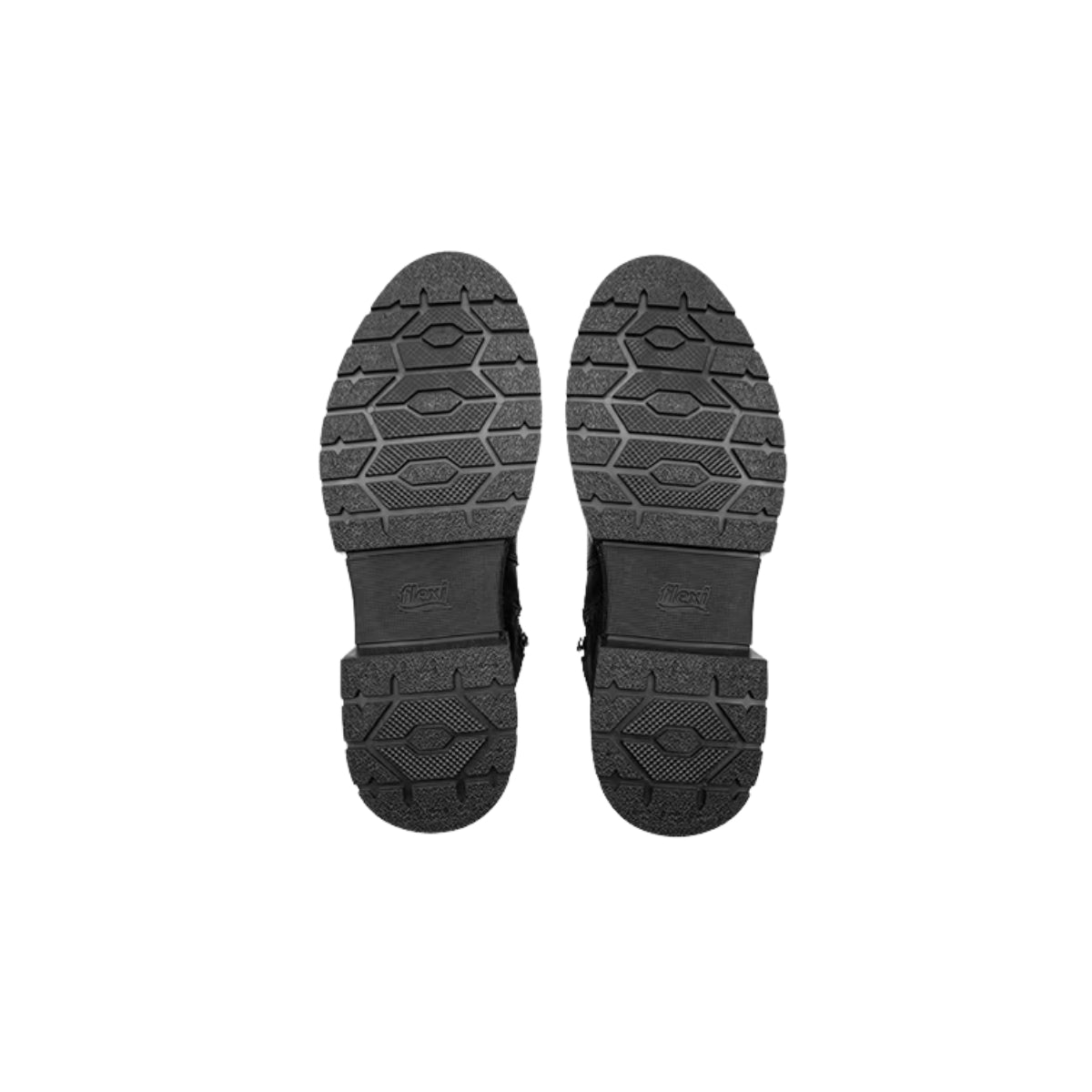 Botín biker de piel negra para dama, cómodo, moderno y con suela dentada resistente.